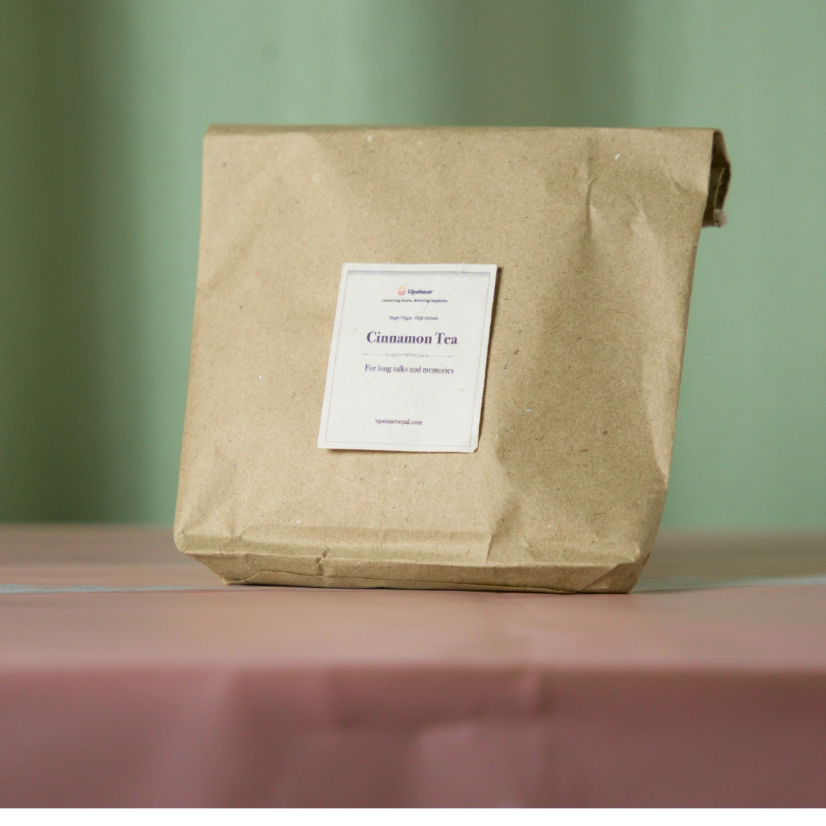 A heartfelt gift of aromatic cinnamon tea in eco-conscious craft paper packaging — warm, fragrant, and full of love from across the miles.